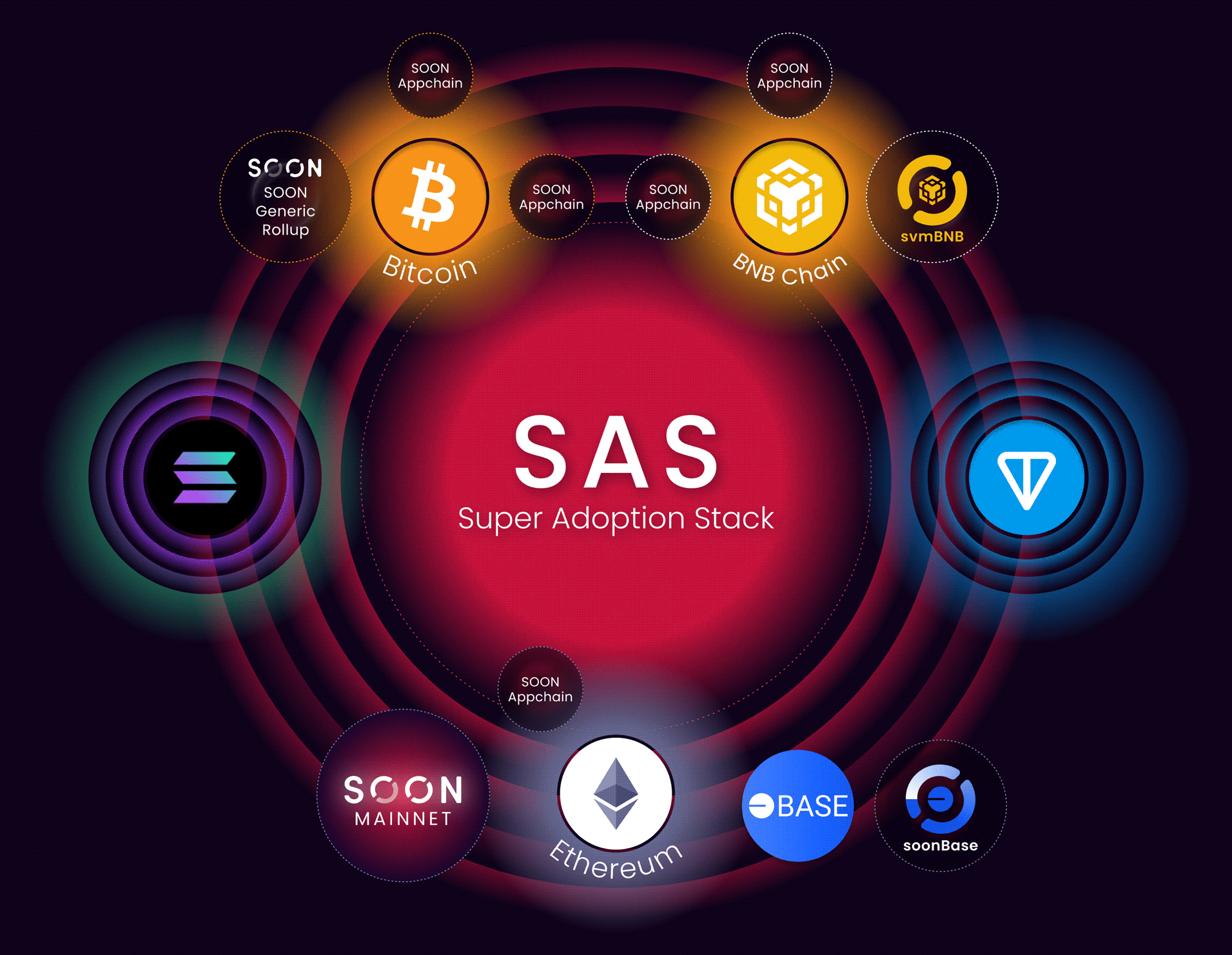 SAS is designed as a comprehensive suite of interoperable tools to create a fully interoperable blockchain ecosystem. It combines three core components: SOON Mainnet, SOON Stack and InterSOON.